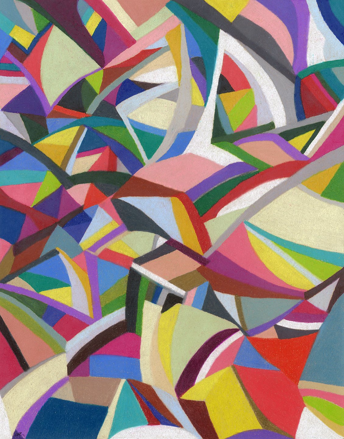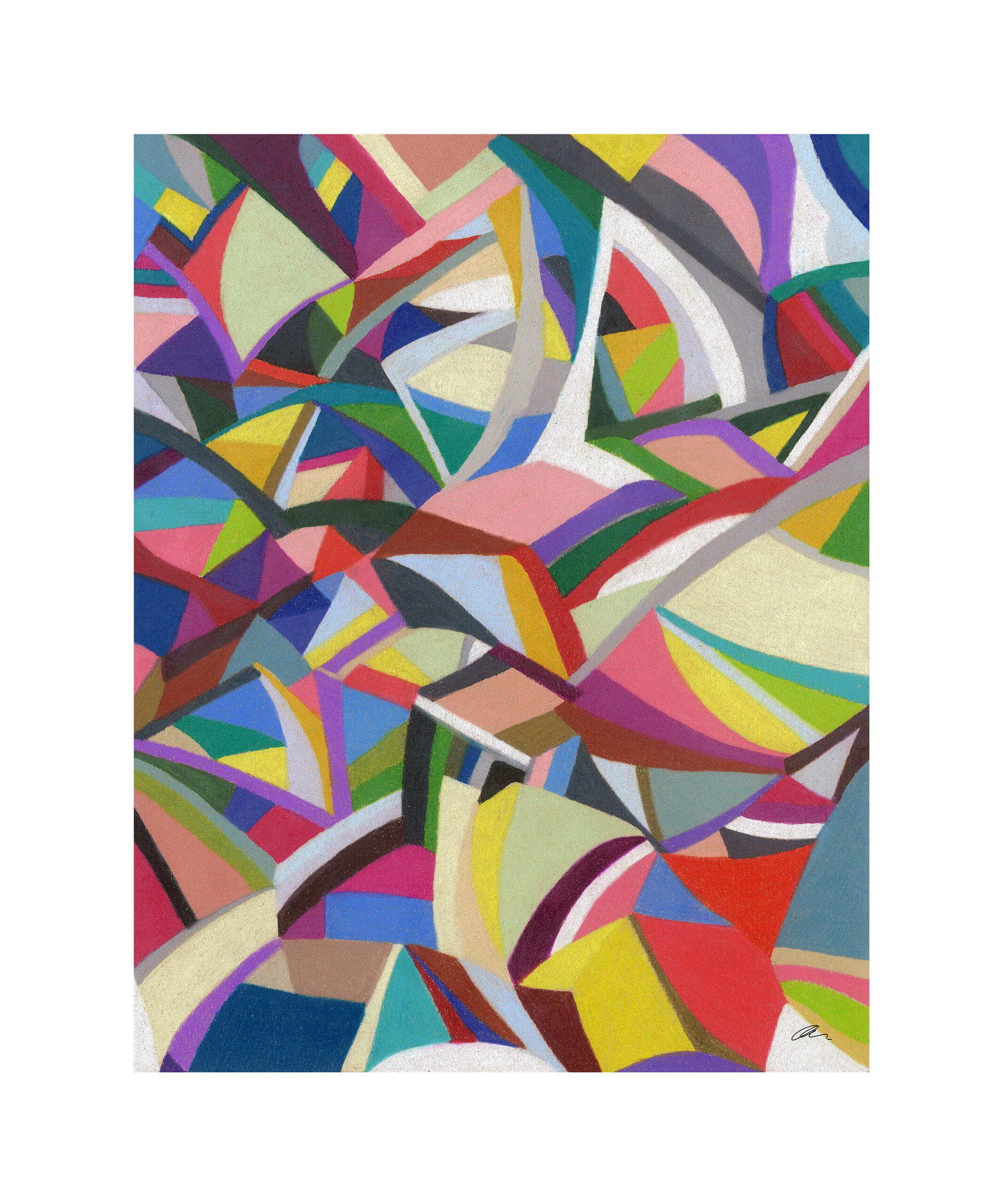 New Path is an abstract path of rocks, hills, and hidden river reflections with color movement from the sun rays projecting and highlighting the angular points.