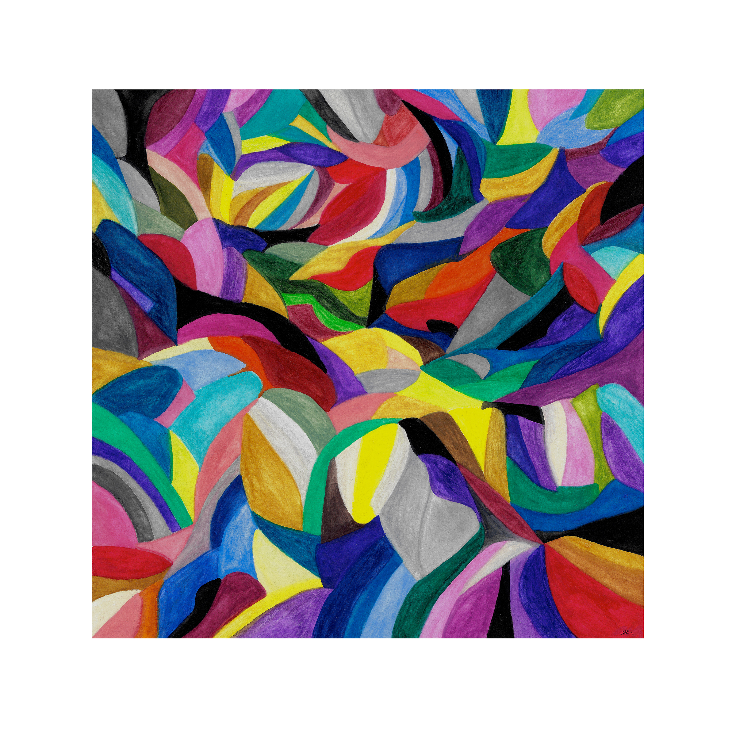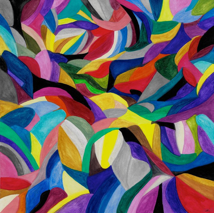 Qi II leads the viewer through a progression of geometric shapes and color arrangements reaching a valley.
